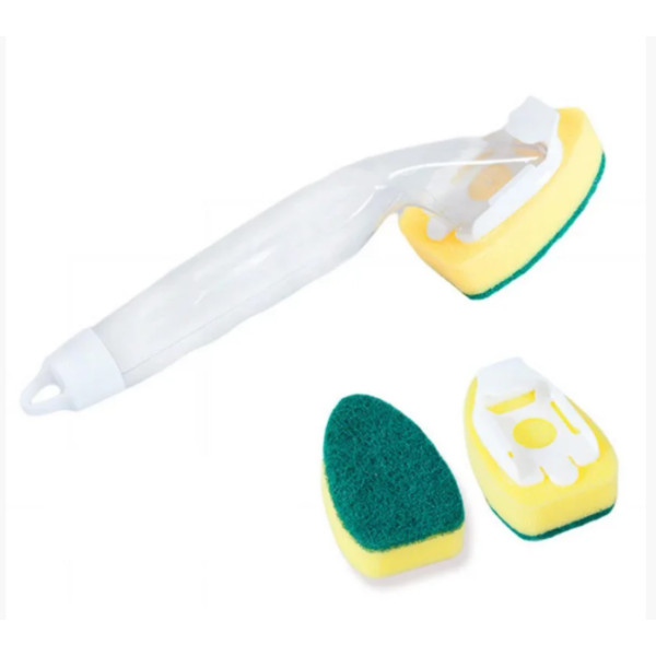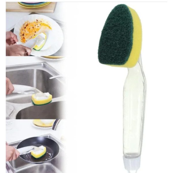 Губка для миття посуду з ручкою і ємність для миючого засобу