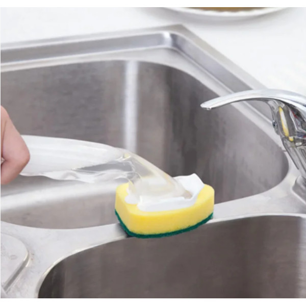 Губка для мытья посуды с ручкой и емкостью для моющего средства