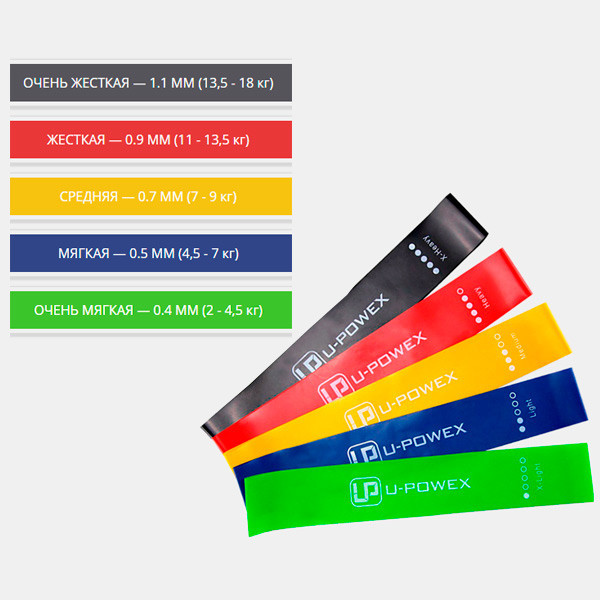 Особливість гумових петель U-Powex – збільшення ефективності тренувань будь-якої групи м'язів, за рахунок додаткового опору.