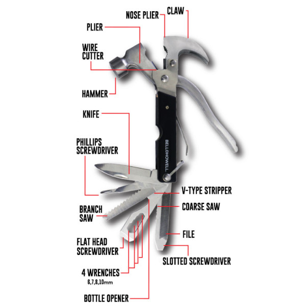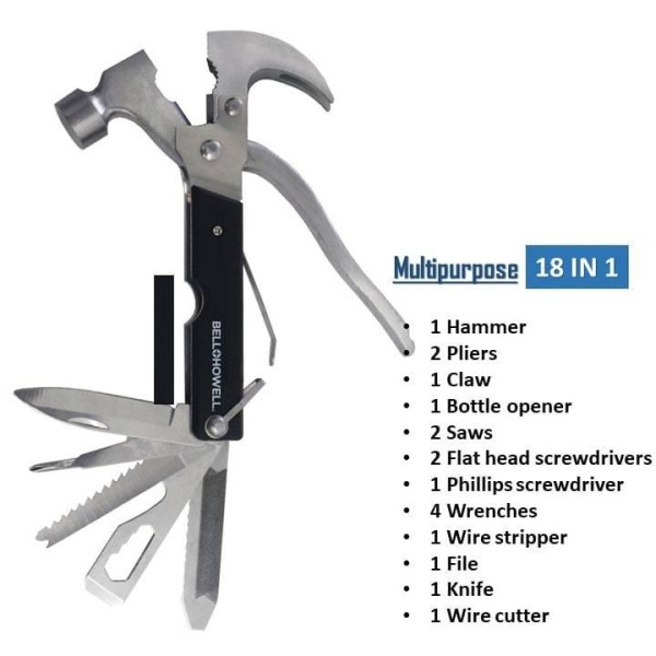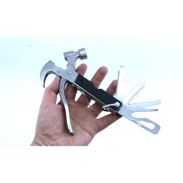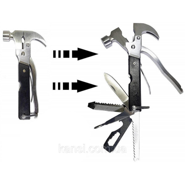 Вашій увазі пропонуємо Мультитул з молотком 18 в 1- який стане ідеальним помічником для кожного чоловіка! Ви зможете відмовитися від частини своїх інструментів, в замін на компактний і багатофункціональний молок, який має в собі додатково ще 17 інструментів!!