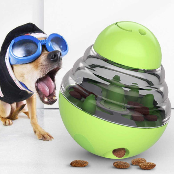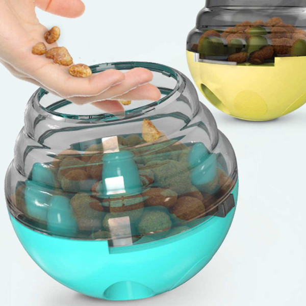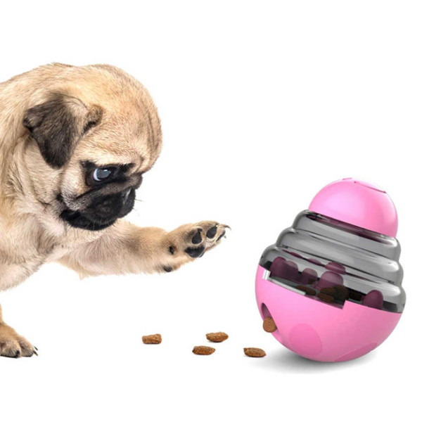• Обертання на 360 градусів Tumbler дизайн харчового дозування собачої іграшки, дозволяє домашнім тваринам вільно рухатися і грати, незалежно від того, як домашні тварини котяться, він все ще встає.