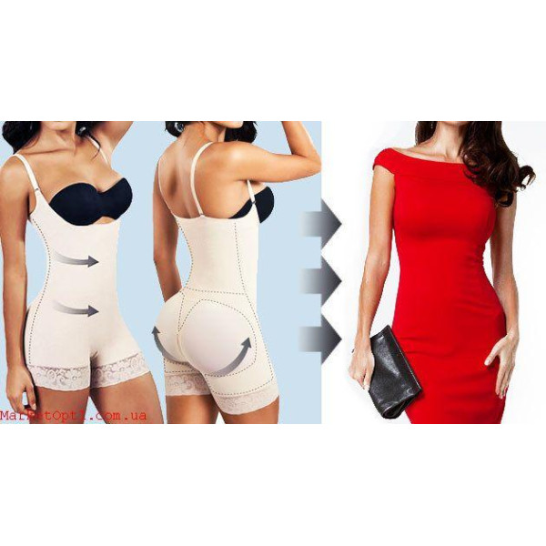 Комбідрес Slim Shapewear має вигляд закритого суцільного купальника з бретельками на застібках, саме завдяки їм коригуючий білизна легко одягнути і зняти.