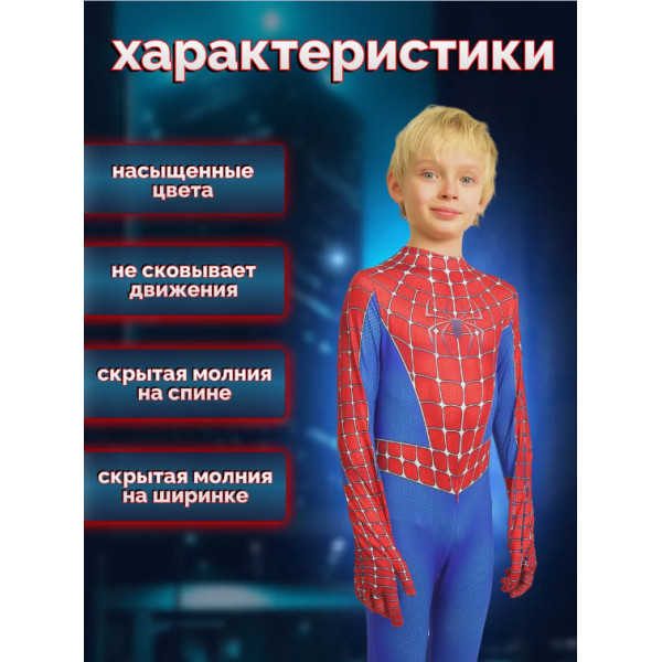 Костюм Людини павука — ідеальний вибір для маленьких фанатів супергероїв! Цей карнавальний костюм створений спеціально для дітей і призначений для свят, Нового року та днів народження.