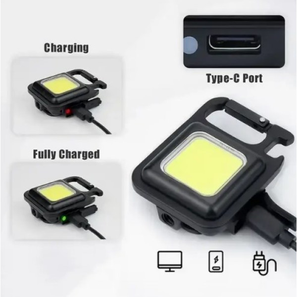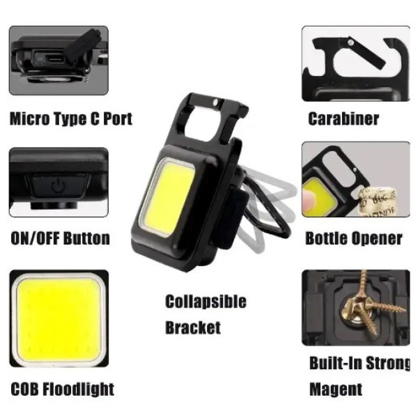 Кишеньковий брелок світильник — яскравий світильник COB: світильник-брелок обладнаний потужними світлодіодами, які забезпечують до 800 люменів освітлення, зберігаючи водночас портативний розмір і простий дизайн.
