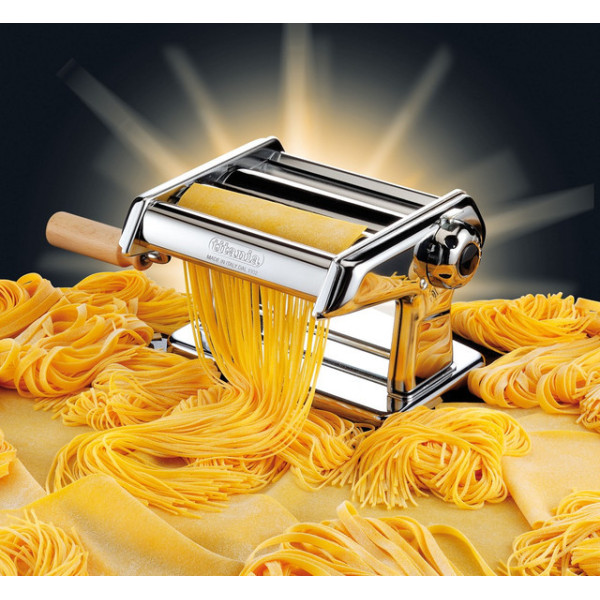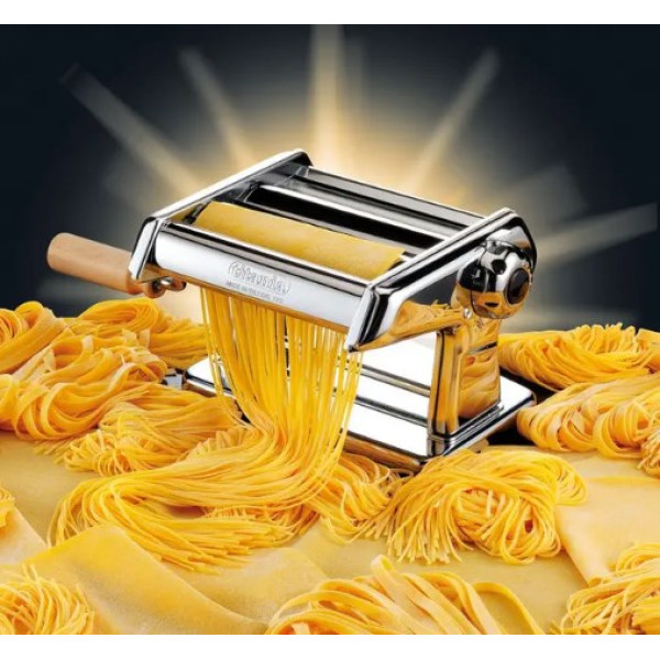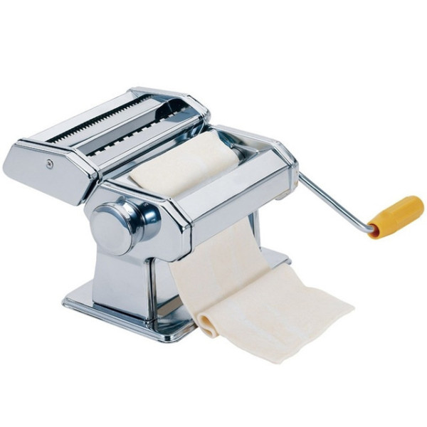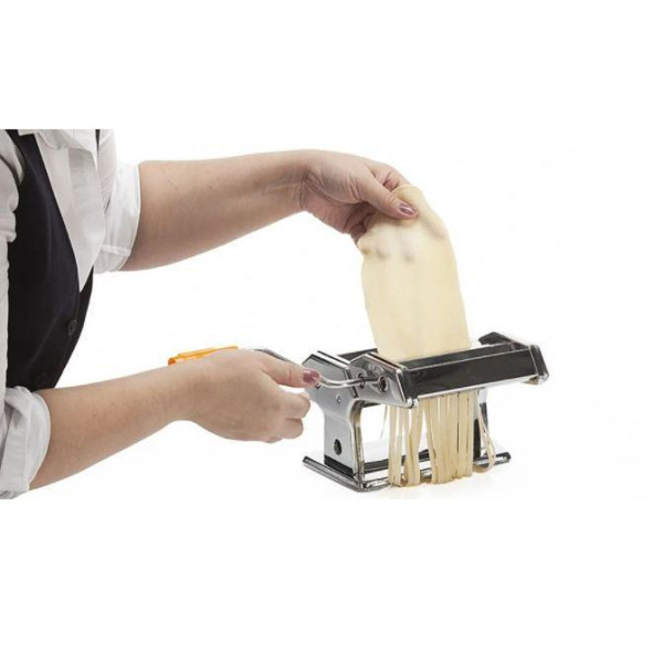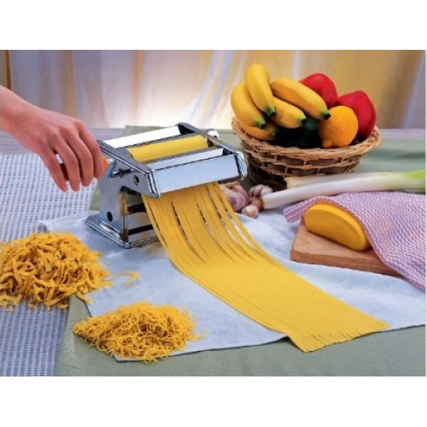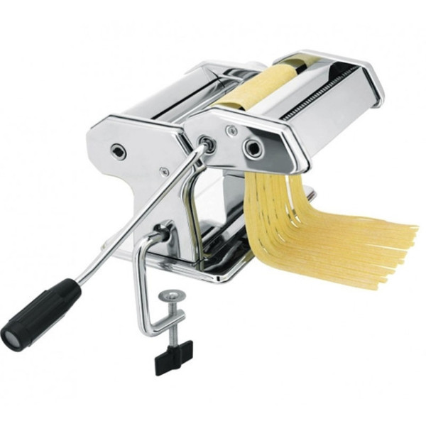 Настільна локшина з ручним приводом PASTA MACHINE незамінна на будь-якій кухні. Вона займає мало місця, легко чиститься, а найголовніше, анітрохи не поступається навіть професійному обладнанню для приготування локшини. У локшині передбачений вал для тонкого розкачування тіста та два нарізні механізми для нарізування вузької або широкої локшини. Блок нарізних валів зроблений знімним для полегшення чищення.