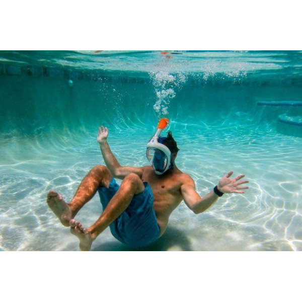 Повна маска для снорклінга - це пристосування в якому можна займатися снорклінгом, пірнати комфортно до 2-3 метрів і природне дихання носом і ротом через трубку. Снорклінг це вид підводного плавання. Якщо дайвінг - це занурення в безодню з балоном, то снорклінг - це надводне плавання або занурення на глибину до 2-3 метрів.