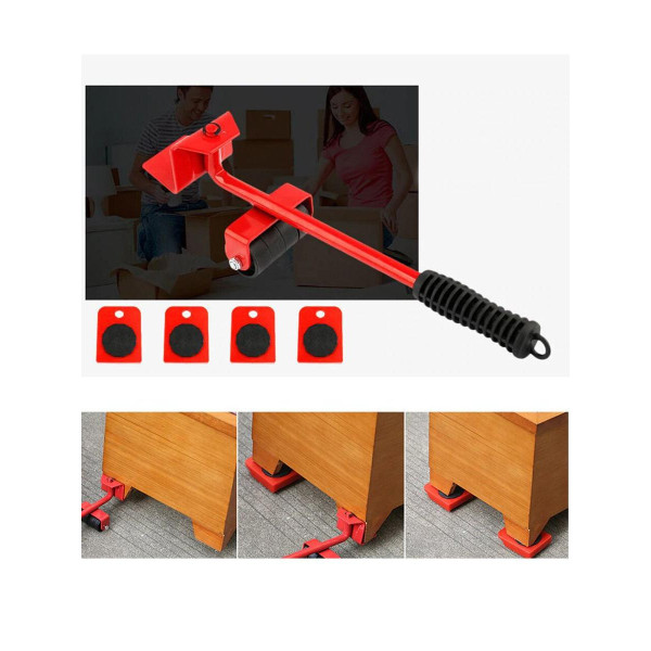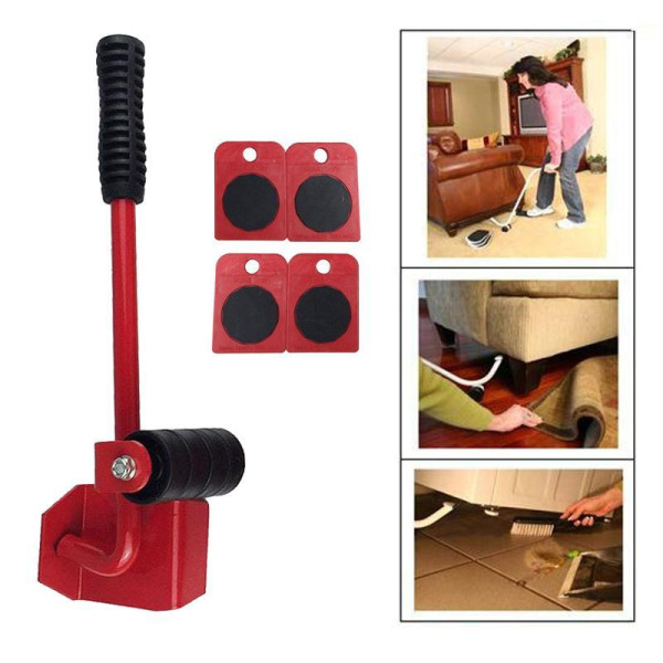 Пластикові стійки з роликами для транспортування і розміщення меблів або інших вантажів вагою до 150 кг. Сталевий важіль використовується для підйому вантажу перед установкою роликових опор.