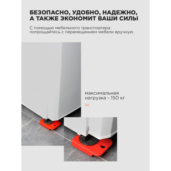 - Для транспортування, переміщення й розміщення меблів та інших вантажів до 150 кг.