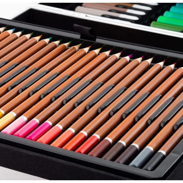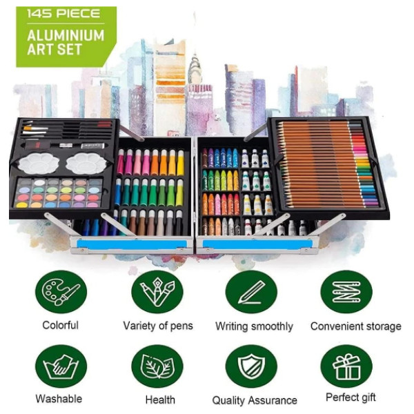 • Безпечні та якісні матеріали: Усе художнє приладдя з набору виготовлене з екологічно чистих і нетоксичних матеріалів, що гарантує безпеку вашої дитини під час занять. Крейда, фарби, олівці та інші інструменти ідеально підходять для дитячих рук і легко змиваються зі шкіри та одягу.