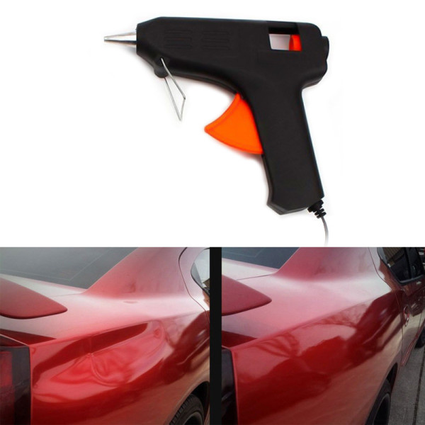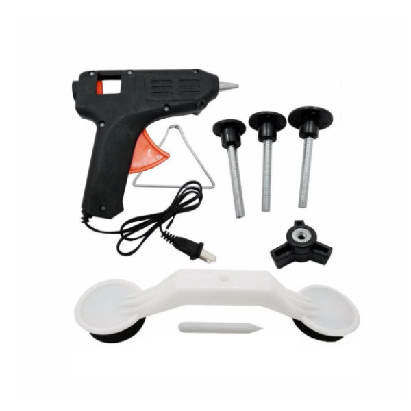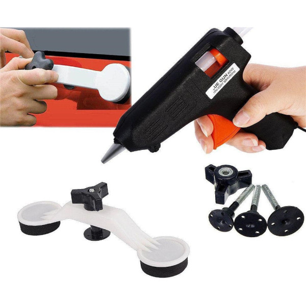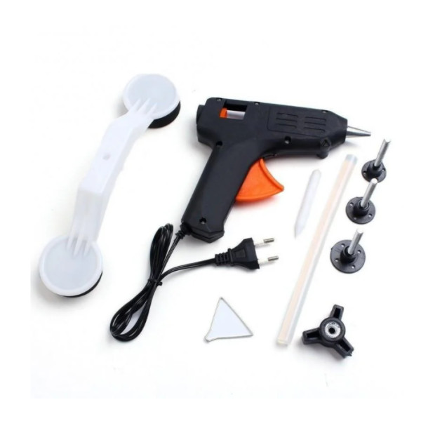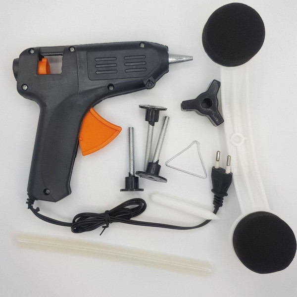 Принцип дії набору Зробити невеликий ремонт кузова з Роpsadent досить просто. За допомогою спеціального клею потрібно наклеїти присосок до центру пошкодження. Клей попередньо потрібно розігріти.