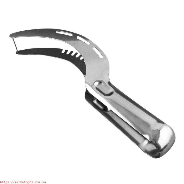 Використовуючи нож для чищення та різання кавуна та дині, Ви зможете насолоджуватися смаком улюбленої ягоди, не вимазнувшись і не забруднивши одяг. Унікальний нож виготовлений із неіржавкої сталі, що захищає прилад від корозії та деформації, у разі постійного контакту з водою. Використовувати новітній ніж Ви зможете не тільки для нарізування кавуна, але й для дині абсолютно різних сортів. Ніж для нарізування кавуна та дині має незвичну форму, саме завдяки їй кухонний інструмент стає незамінним помічником під час оброблення ароматної ягоди. Легка вага та компактний розмір не займуть багато місця на кухні, а зручна ручка легко розміститься в долоні та не вислизне з неї.