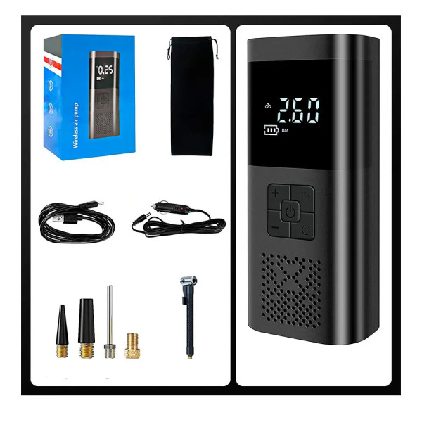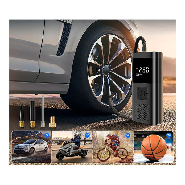 Цей портативний перезаряджуваний автомобільний повітряний компресор VC-02 являє собою зручний і багатофункціональний пристрій для накачування шин різних транспортних засобів, як-от велосипеди, мотоцикли та автомобілі. Ось основні характеристики цього компресора: