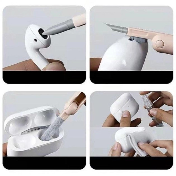 Силіконові насадки використовуються для видалення стійких плям у щілинах навушників, ключів та інших предметів . Щітки високої щільності використовуються для видалення бруду та пилу зі звукових отворів навушників. Флокуюча губка використовується для видалення пилу з внутрішньої сторони чохла для заряджання навушників. Фланелеві серветки використовуються для очищення великих запилених поверхонь, таких як клавіатури, столи, віконні перила і т.д.