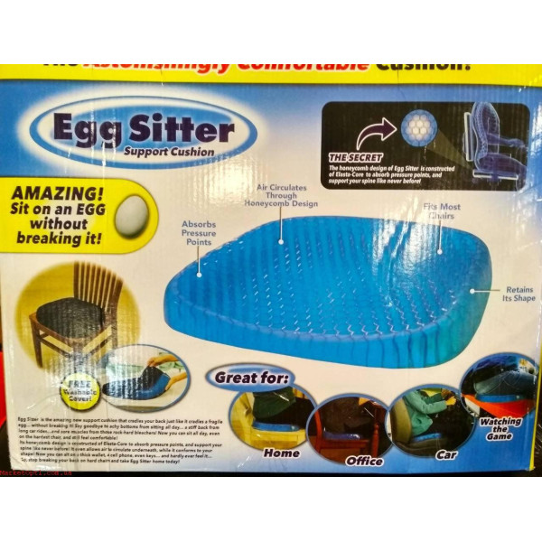 Ця дивовижна подушка зробить стілець зручніше крісла. Вона корисна для зняття втоми, поліпшення здорової постави, розподілу ваги і легкості руху. Подушка Egg Sitter підійде також і автолюбителям, які проводять багато часу за кермом в дорозі. Покладіть її на сидінні автомобіля і ваша спина скаже вам спасибі!