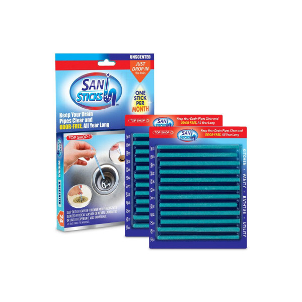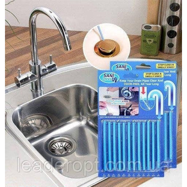 Палички Sani Sticks призначені для видалення засмічень із слив. У квартирі є багато водостічних труб, кожна з яких по-своєму зазнає навантаження. У ванній — волосся, на кухні — щільне нашарування жиру.