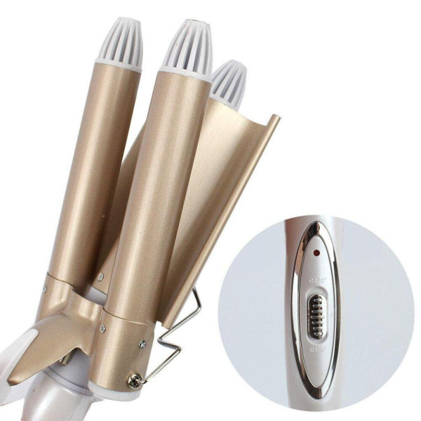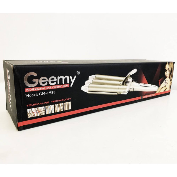 Потрійна плойка Gemei GM-1988 дає змогу укладати з локонами різного ступеня пружності. Такі гарні локони виходять через приміщення пасма на одну з поверхонь плойки та надання волосся двома іншими. Фіксація відбувається під дією високої температури. Модель плойки Gemei GM 1988 має міцне та довговічне керамічне покриття. Тепер створювати оригінальну укладку без особливого клопоту та водночас максимально щадним способом. Плойка дає змогу створювати кілька варіантів хвиль — від S-подібних до хвиль, з ледь помітними округленням, надаючи особливого шарму, підкреслюючи індивідуальність і елегантний тонкий смак.