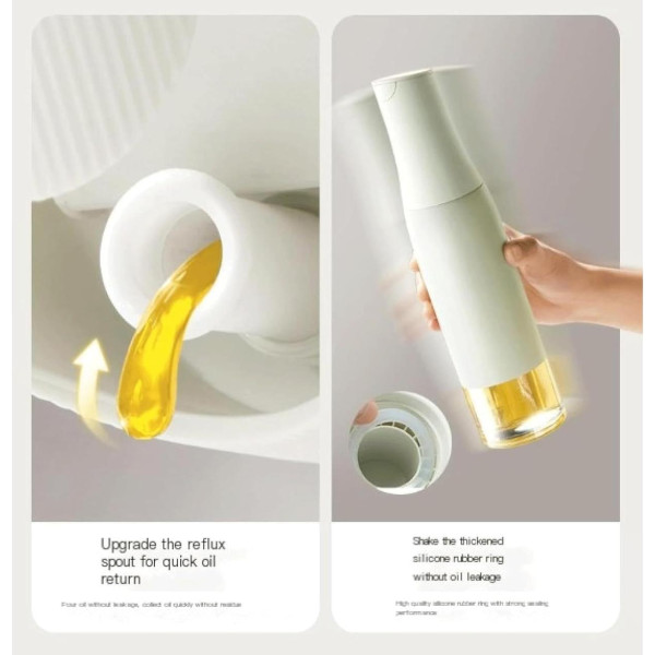 Розширене горлечко перевернуте для рівномірного розподілу олії, а широка шийка дає змогу легко заливати олію, оцет та інші соуси, не допускаючи витікання.