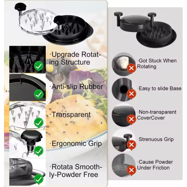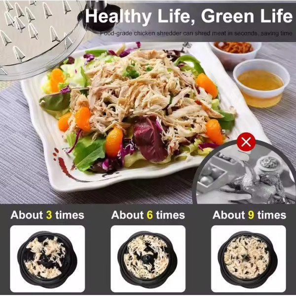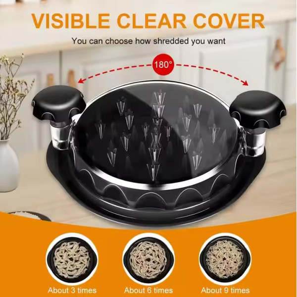 Подрібнювач для курки, який легко перетворює приготоване м'ясо на ніжні та повітряні шматочки, є справжньою знахідкою для тих, хто захоплений здоровим способом життя, фітнесом, приготуванням барбекю та кулінарією загалом. Цей кухонний інструмент відкриває нові можливості для швидкого та зручного приготування страв, неабияк спрощуючи процес оброблення м'яса. Завдяки подрібнювачам, створенню смачних і поживних страв, як-от курячі салати, обгортки, сендвічі та корисні дієтичні страви, стало набагато швидше та зручніше. Подрібнювач для курки має продуману конструкцію, що гарантує максимальний комфорт і безпеку під час використання. Він обладнаний стійкою нековзною основою, яка запобігає ковзанню поверхнею столу. Це особливо важливо під час активного подрібнення м'яса, оскільки дає змогу зосередитися на процесі, не переживаючи про те, що прилад може зрушитися. Ручка, що обертається на 360°, робить процес подрібнення швидким і легким. Вам не потрібно докладати великих зусиль — досить просто обертати ручку, і м'ясо рівномірно подрібнюватиметься, перетворюючись на дрібні, акуратні шматочки.