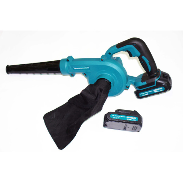 Особливістю повітродувки є режим всмоктування. Для збору сміття використовується компактний і міцний мішок. Інструмент отримує живлення від акумулятора 24В.