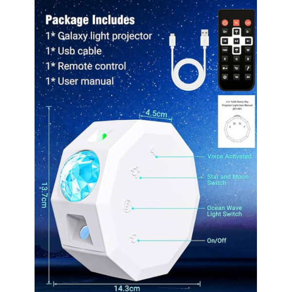 Галактичний проєктор зоряного неба — це не просто освітлення, це цілий світ можливостей, який дасть вам змогу створювати унікальні моменти в житті. Чи то романтичний вечір, весела вечірка або спокійна ніч, цей проєктор стане вашим незамінним помічником у створенні ідеальної атмосфери. Не проґавте можливість додати чарівництва у своє життя!