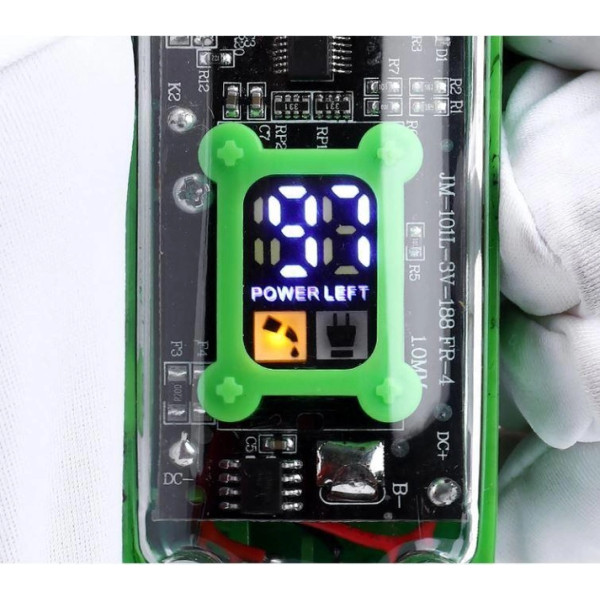 Модель виготовлена в пластиковому корпусі, який дає змогу тримати машинку максимально комфортно в руці та забезпечити гарну точність у роботі. Вага машинки — всього 270 грамів. Наша компанія рекомендує цю модель для як роботи в барбершопі, так і для стандартного салону — модель універсальна та впорається з будь-яким завданням, добре підійде для стриження голови та бороди. Обов'язково придивіться до цієї машинки, якщо шукаєте надійний і витривалий інструмент, зі стильним ергономічним дизайном і високою продуктивністю. На верхній кришці корпусу знизу розташований інформаційний LED-дисплей, на якому виводити інформацію про залишковий заряд акумулятора у відсотках, а також індикація заряду й індикація "своєчасній змазки ножів". У комплекті постачається кабель USB разом із зарядним блоком.