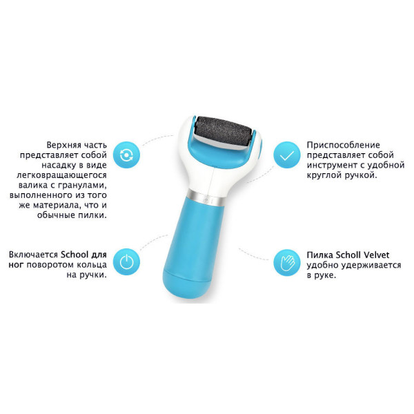 Електрична пилка Шоль легко піддається гігієнічній обробці. Ролик знімається і промивається під струменем проточної води. В якості джерел живлення електрична пилка для п'ят використовує чотири звичайних пальчикових батарейках.