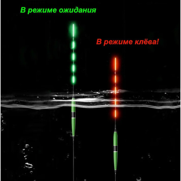 Представляємо Вашій увазі розумний поплавок, який сигналізує про поклевке. Цей поплавок має можливість світитися в двох режимах: зелений - в режимі очікування покльовки, червоний - при клюванні. Таким чином, даний поплавок значно полегшує проведення часу на риболовлі. Рибаку більше немає необхідності безперервно концентрувати свою увагу і не спускати очей з поплавця, за нього це зробить розумний поплавок з індикацією на клювання!