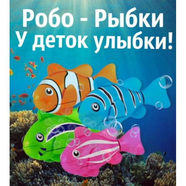 Роборыбки ROBO FISH практично нічим не відрізняються від справжніх акваріумних рибок. Вони повністю копіюють яскравих і барвистих тропічних рибок. Електронні рибки можуть плавати у п'яти напрямках: вгору, вниз, вперед, вправо, вліво. Хоча відмінності звісно є - рибки ROBO FISH зовсім невибагливі до корму, точніше - звичайний корм для акваріумних рибок їм зовсім не потрібен. Пара маленьких батарейок, вбудованих в рибку ROBO FISH, надовго забезпечують її життєвою енергією.