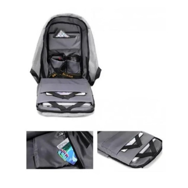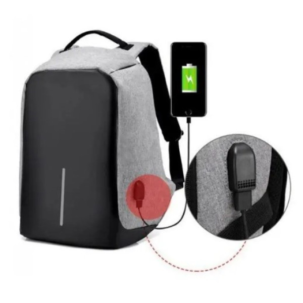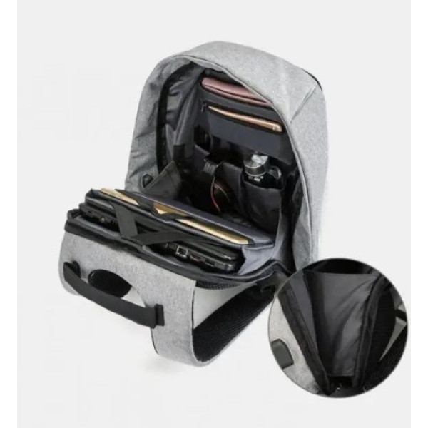 Система антизлодій — головна особливість цієї моделі. Більше не потрібно турбуватися про те, що ваш рюкзак можуть відкрити без вашого відома. Рюкзак із захистом від злодіїв зроблений так, що блискавка основного відділення прихована товстим тканинним загином на тильній стороні рюкзака, що прилягає до спини. У рюкзак помістяться всі речі, необхідні в повсякденному житті, і навіть більше. Ноутбук, гаманець, планшет, пляшка води, телефон. Система циркуляції повітря: м'яка вставка для спини забезпечує циркуляцію повітря для максимального комфорту та зручності. Плечові ремені регулюються. Також рюкзак має водовідштовхувальну та брудовідштовхувальну властивість. Світловідбивні смужки гарантують додаткову безпеку в нічну пору. Є порт USB, що дасть змогу швидко заряджати ваші електронні пристрої на ходу. Зарядний пристрій до комплекту не входить. Необхідно всередині рюкзака під'єднати свій powerbank до кабелю та заряджати телефон через USB-порт, розташований на рюкзаку.