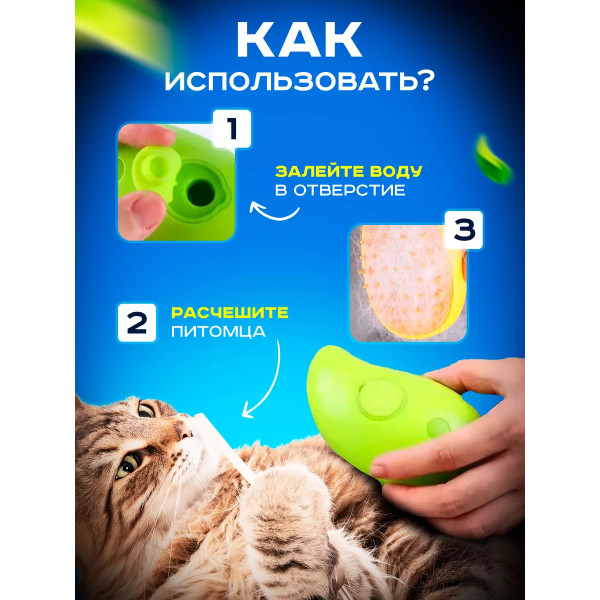 Дбайливо впливає на шкіру вихованця: парова щітка для кішок має м'яку щетину з заокругленими кінцями, що гарантує, що шкіра вашого вихованця не буде пошкоджена в процесі догляду.