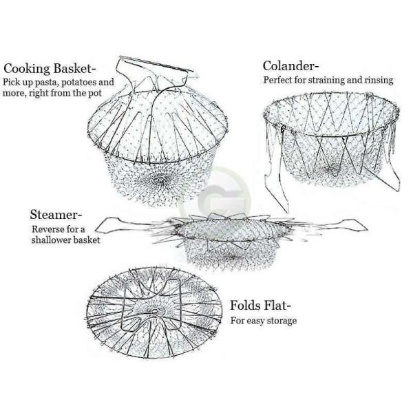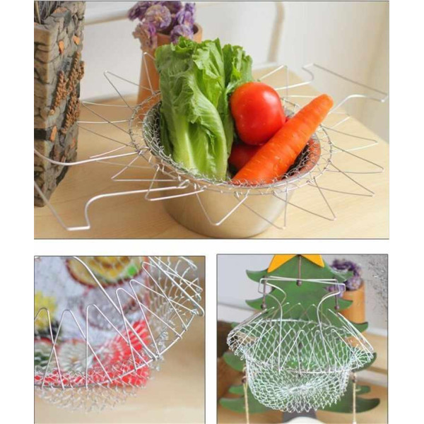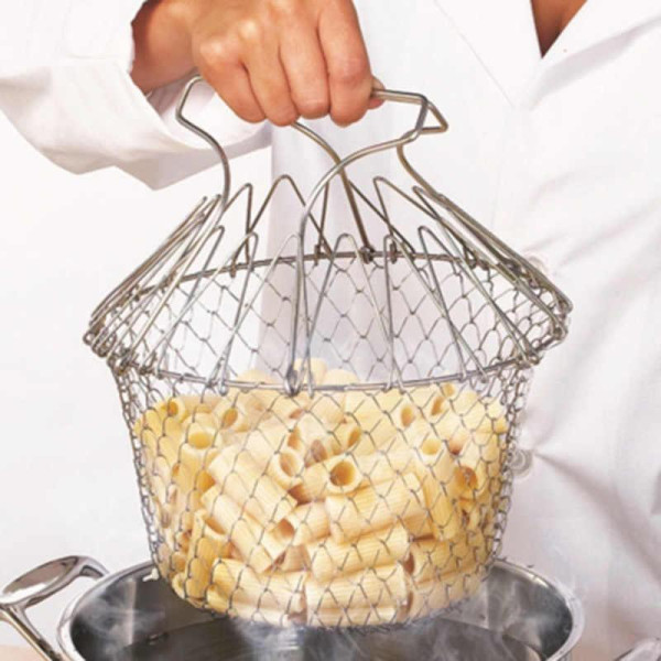 Помічником у кулінарній діяльності на кухні стане друшляк — кошик Chif Basket (Чиф Баскет). Зручний аксесуар із успіхом замінить кілька предметів кухонного інвентарю. Chif Basket (Чиф Баскет) бере на себе функції фритюрниці, пароварки, друшля, страви для готових продуктів. Він являє собою складаний кошик, який виготовлений із неіржавкого сталевого дроту.