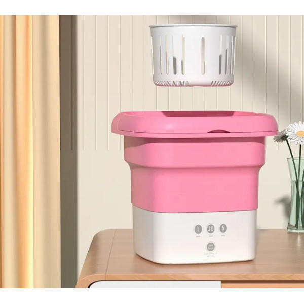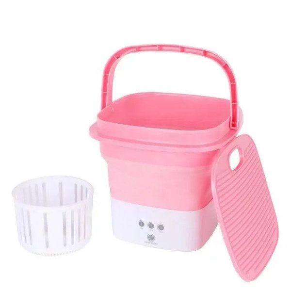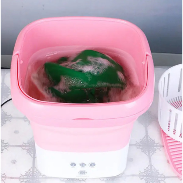 Складана пральна машина, яка завдяки системі складання як гармошка, стискається до таких компактних розмірів, що може поміститися в дорожній валізі. Крім того, у її конструкції передбачена ручка, за допомогою якої пральну машинку можна нести в руці. Пристрій являє собою складане гумове пластикове відро зі встановленим у днищі електромотором. Ребриста кришка може слугувати для додаткового ручного прання. Живлення пральної машинки походить від мережі 220 В.