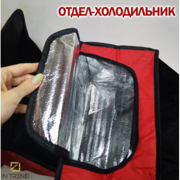 Маючи невеликий розмір він зможе вмістити в себе дуже багато корисних речей. Органайзер складається з трьох відсіків, вони розділені надійними, міцними перегородками. Два відсіки з боків призначені для зберігання різних дрібниць, середній ж виконує роль, холодильника, який діє за принципом термосумки, що безсумнівно дуже зручно. Ручки органайзера дуже міцні, але переносити в ньому дуже важкі речі не можна.