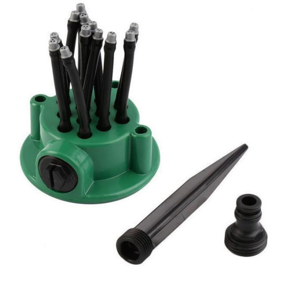 Зрошувач зроблений з міцного Abs-пластика, що надає хорошу довговічність. Гнучкі шланги допоможуть Вам точно направити струменя дощовиків на необхідні зони поливу.