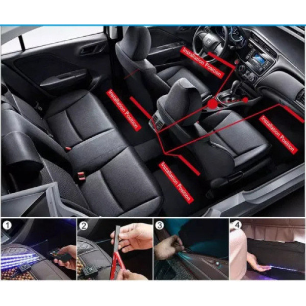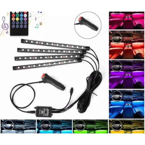 LED підсвітка салону автомобіля з ДК пультом чудово підкреслить індивідуальність Вашого автомобіля та якісно, яскраво його виділить серед інших авто. Комплект підсвітки легко встановлюється й живиться від стандартного роз'єму прикурювача 12 В Вашого авто. Так само за бажання можна приховати роз'єм під обшивкою авто, щоб звільнити роз'єм прикурювача. За допомогою пульта можна не тільки вмикати/вимикати підсвітку, але також вибрати один із безлічі різновидів колірних схем підсвічування.