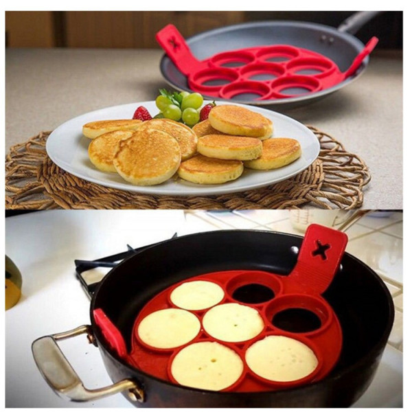 Секрет пристосування полягає в тому, що для його виготовлення був використаний харчовий силікон, до якого не дістає тісто. Силіконова форма для оладок має 7 заглиблень. Плоске силіконове кільце в кожному заглибленні утримує олади під час перевертання. Тому приготування оладок тепер стане швидким і не турботливим.