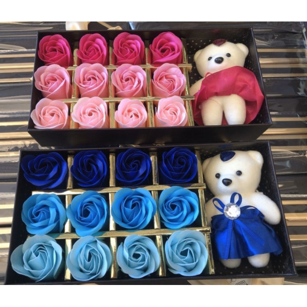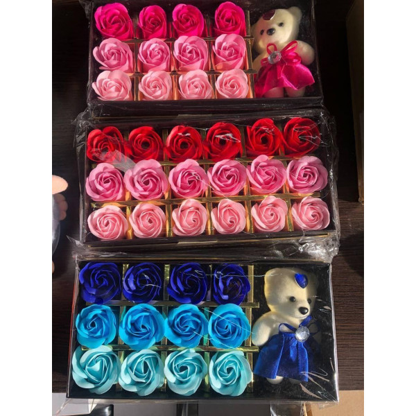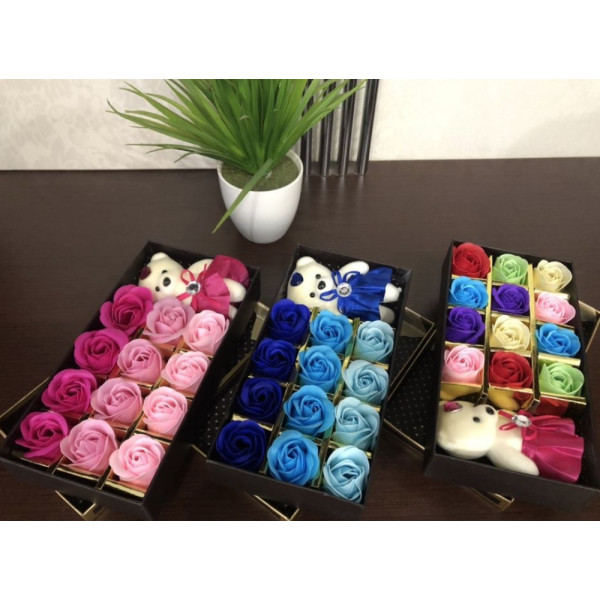 Троянди з мила на подарунок, мильні троянди, подарункові набори мила з троянд із ведмедиком, сувенірне мило