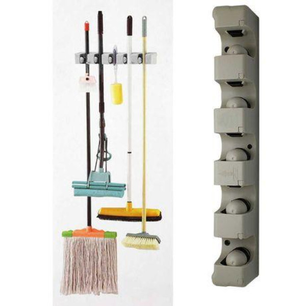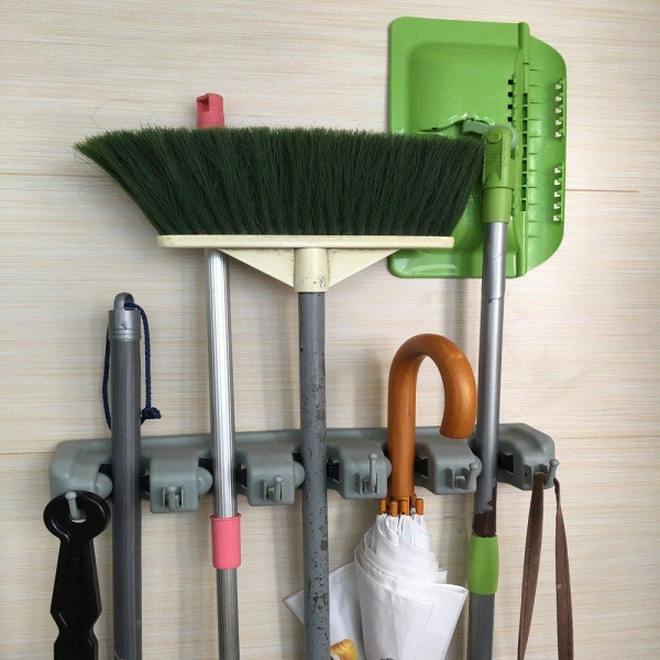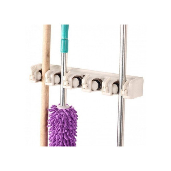 Тримач-органайзер для швабри та щіток Broom Holder — багатофункціональне пристосування, яке стане в пригоді в кожному домі. Модель обладнана п'ятьма роликами для швабри або щіток на довгих ручках або для різних дрібниць (йоржиків, ключів, інструментів). Завдяки продуманій конструкції, підставка займає мінімум простору та здатна компактно розміститися в коморі, санвузлі, кухні або технічному приміщенні, у такий спосіб даючи змогу заощадити вільне місце та зберігати інструменти для прибирання разом.