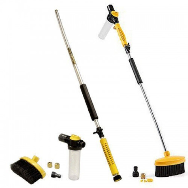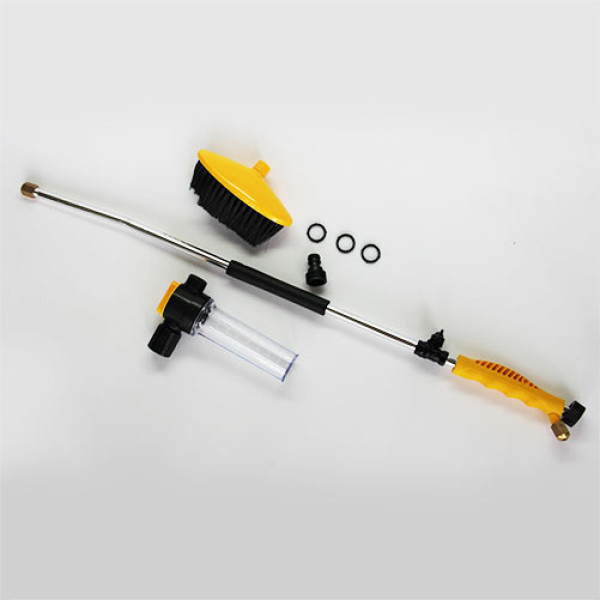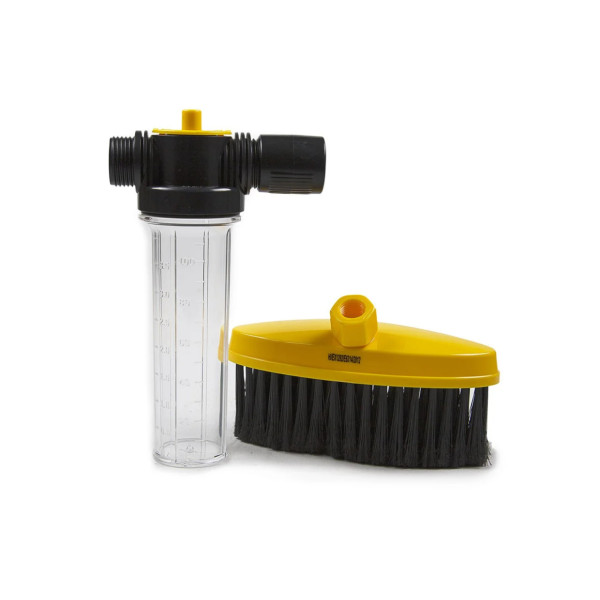 - Решения различных задач. В комплекте с насадкой идут щетки, которыми можно воспользоваться для чистки мебели в доме или на даче. Также предусмотрена емкость для залива садовой химии и моющих средств.