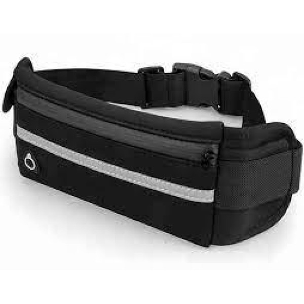 Спортивна поясна сумка виконана із стрейчевої тканини, що дозволяє їй щільно триматися, з регульованим об'ємом від 60 до 130 см за допомогою регулювального ремінця