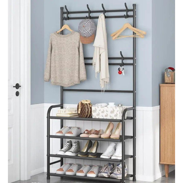 Збірна вішалка для підлоги - стійка для одягу в передпокій з полицями для взуття New simple floor clothes rack