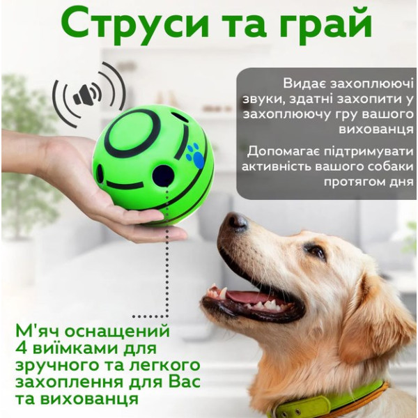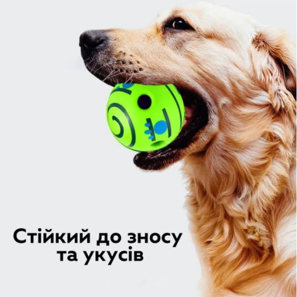 Мяч издает забавные звуки (хихиканье, пищание) во время движения, поощряя собаку играть.