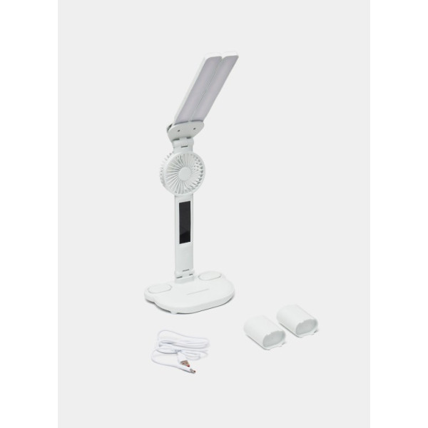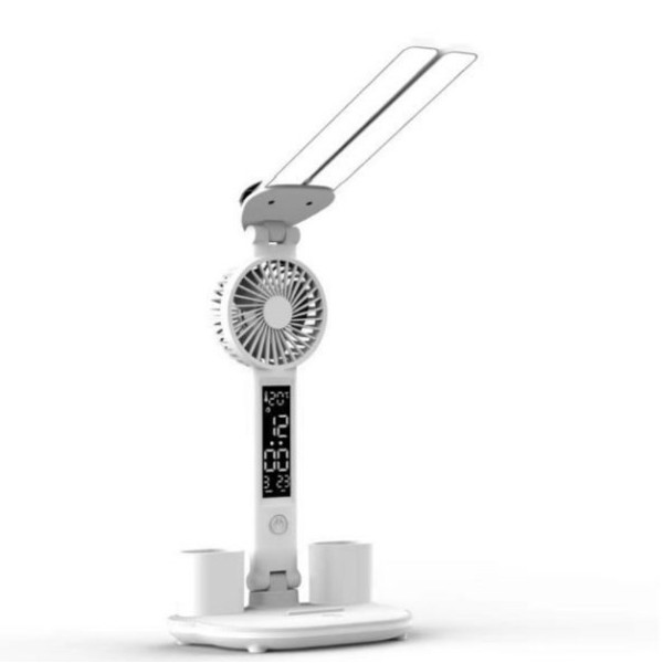Настільна лампа з 2 плафонами, годинником і вентилятором – це універсальний аксесуар, що забезпечить комфортне освітлення, точний час і приємне охолодження під час роботи чи навчання!